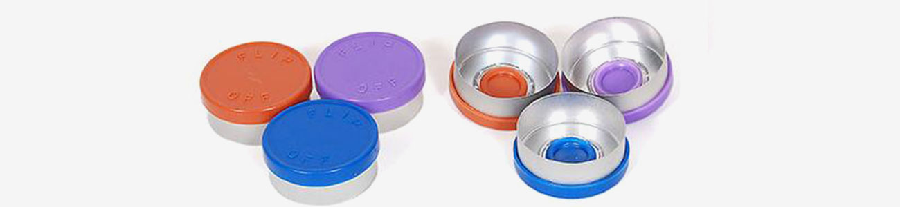 We manufacture Flip off Seals in different sizes and colours. The flip off seal comprises of aluminium seal and a plastic button attached to it. When the button is opened the aluminium seal crimped to rubber stopper tears leaving the injection area open.